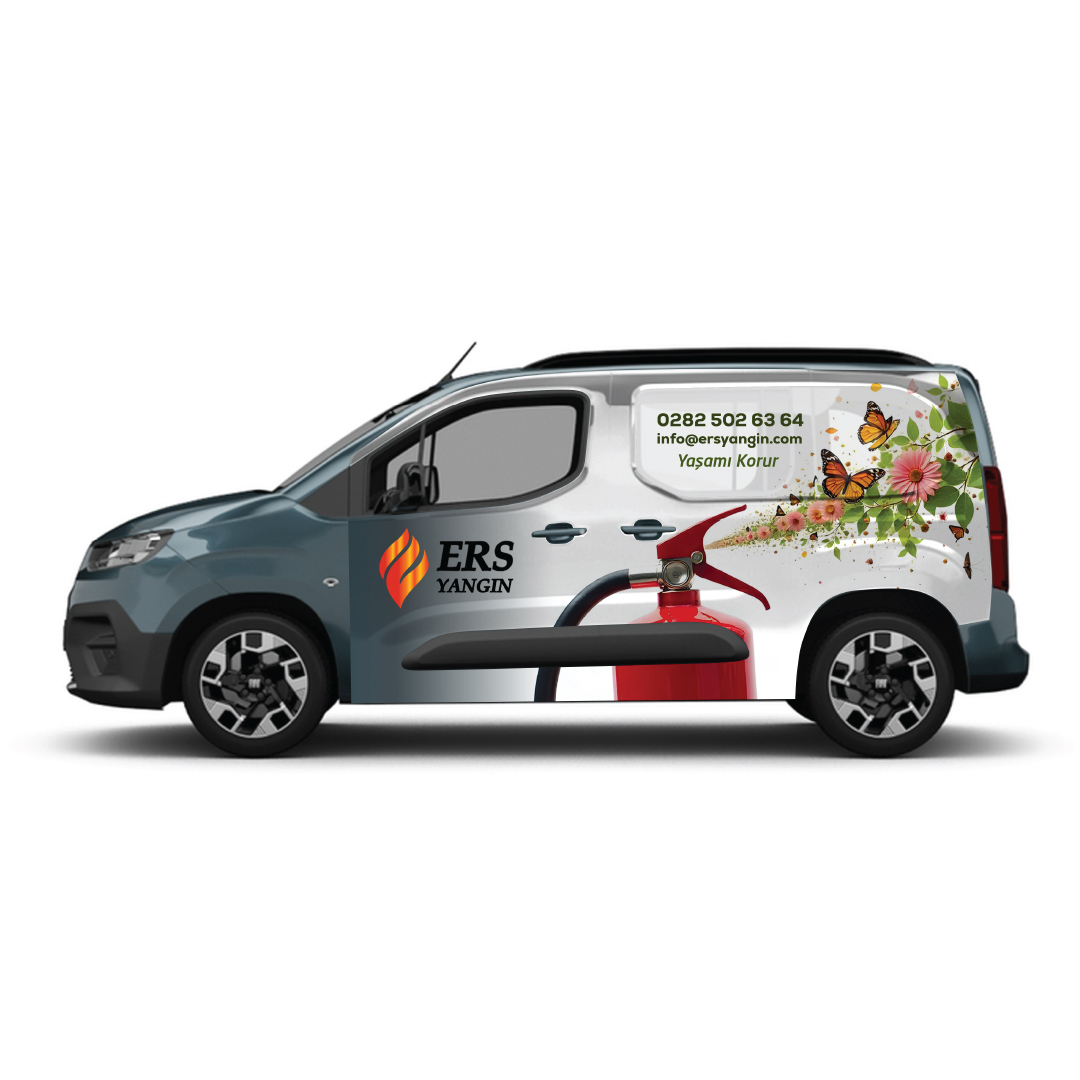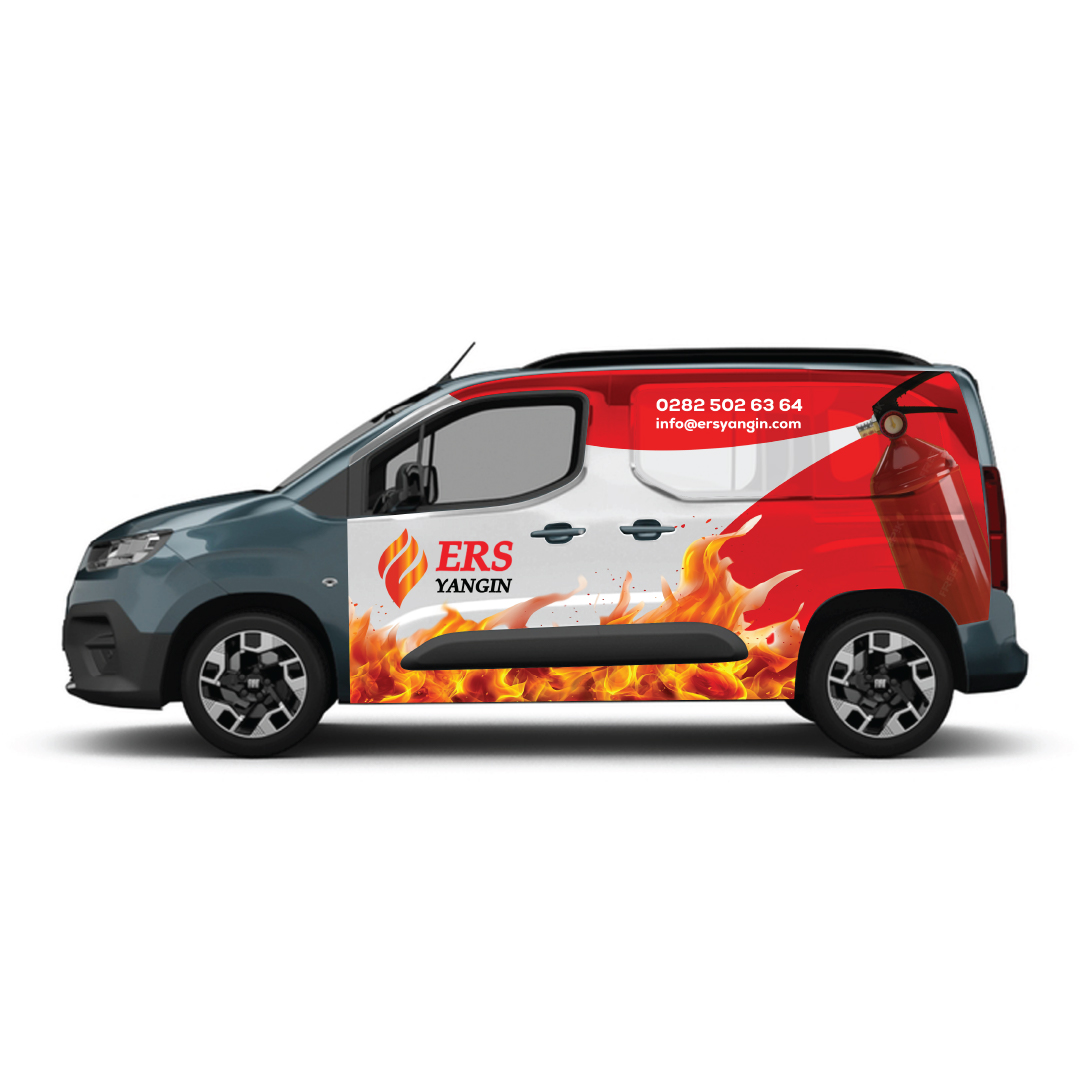 ERS Yangın araçları için özel olarak hazırlanmış, dikkat çekici ve kurumsal uyumlu araç giydirme tasarımı hizmeti. Dayanıklı, estetik ve modüler tasarım.