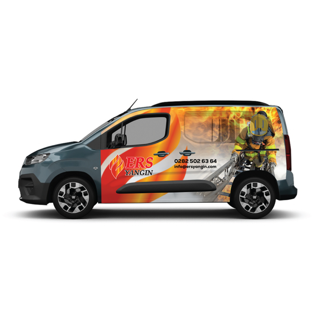 ERS Yangın Araç Giydirme Tasarımı, acil müdahale araçlarınız için özel olarak hazırlanmış profesyonel bir görsel tasarım hizmetidir. Tasarımımız; araçlarınızın hem estetik hem de fark edilir olmasını sağlar. Parlak renkler, alev efekti ve kurumsal logonuzla uyumlu detaylar sayesinde araçlarınız hem güvenlik mesajını iletir hem de markanızı öne çıkarır.